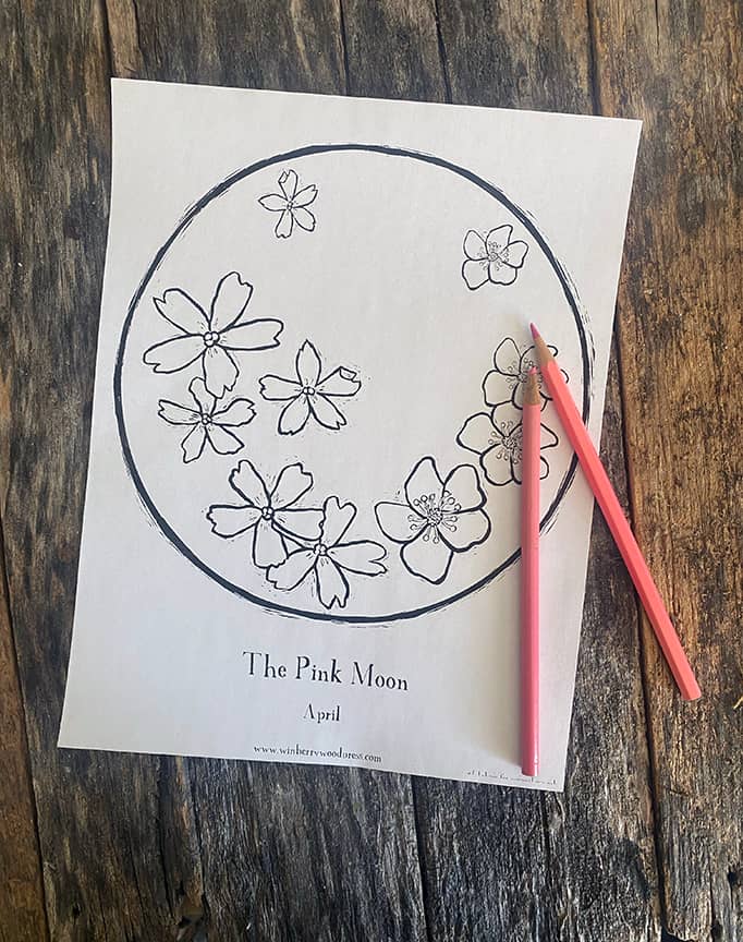 Sign up to get your copy of the Pink Moon Coloring Page today. Stay for newsletters, freebies, & seasonal musings.